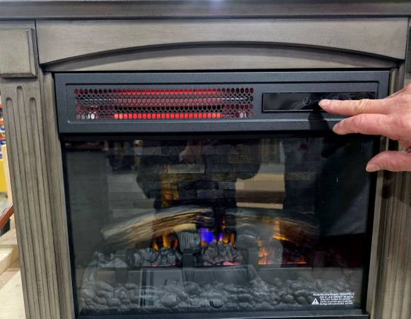 Brand new in box. GRAY INFRARED QUARTZ It gets really hot and it looks amazing very cozy. $395 retail price on Wayfair. It has realistic crackling sounds. Can use fireplace flames without heat. Heats up to 1000 sq.
