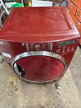Electric dryer has been tested, gets hot and runs smooth. Not perfect cosmetically, sold as-is.