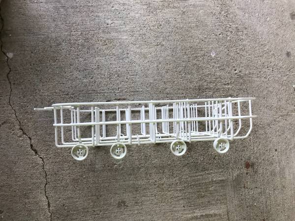This Kenmore / Frigidaire brand lower dishwasher rack is out of stock at most retailers and discontinued. It is the kit, which includes the wheels and the silverware basket which goes in the back. It fits an 18 inch (compact / apartment size) unit – it DOES NOT fit traditional units which are typically 24 inches wide!