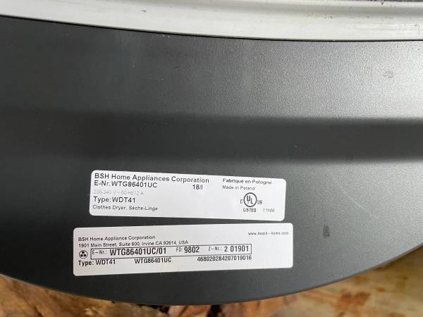 Bosch compact washer and dryer, they are stackable and can be placed side by side Lightly used and looks like new you can test run and check Can deliver