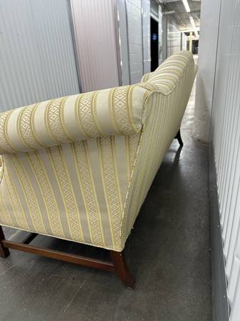 We have a unique white and gold laced Chippendale sofa. Its 19th century and has been cleaned, re upholstered, and re stuffed.