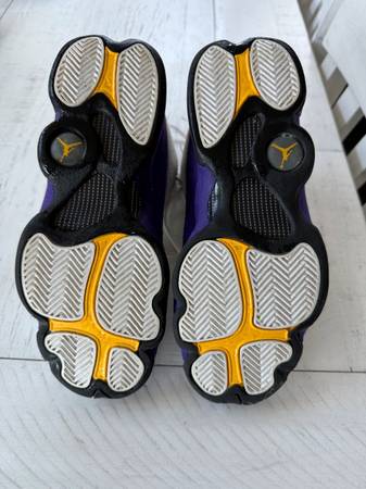 Air Jordan 13 Retro. White/Purple Size 5Y. Only worn three times and only on gym floor. Cost $150 new. Sell for $75 OBO. Can ship if needed.