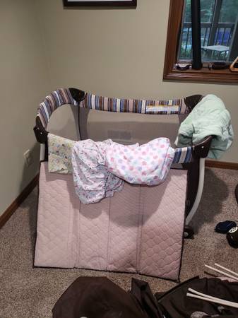 Graco Pack and play with vibration box, changing table, infant bassinet, 4 covers, and vibration controls. Is excellent condition. The pictures show a pretty good idea on the setup. All pieces are...
