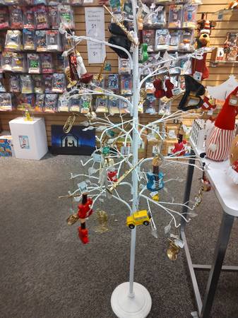 White, metal ornament tree display $25