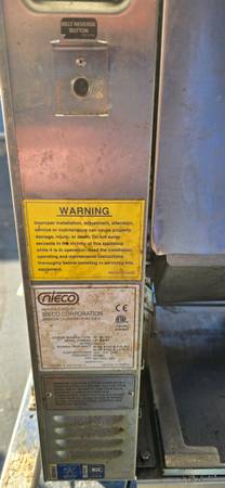 Selling a Nieco Model JF63 Automatic Broiler. About 3 years old, very clean, and in perfect working condition. Came from a well-maintained franchise kitchen. Conveyor feed, adjustable heat and belt speed, stainless steel, and ideal for high-volume cooking (burgers, chicken, steak, sandwiches, etc.).