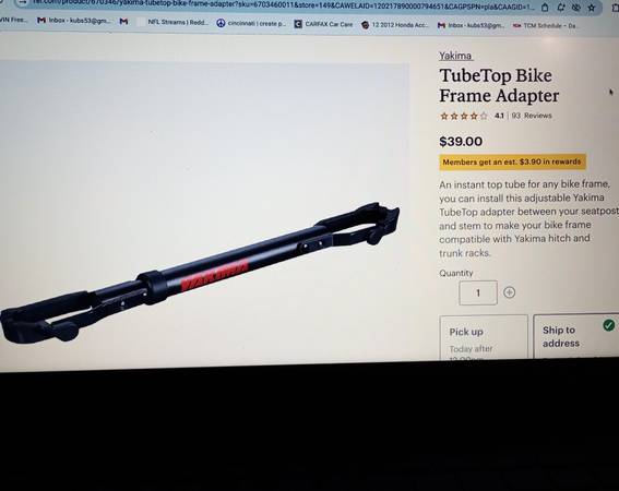 Offering up my Like New Saris Bones 2 Bike Rack ($199 MSR) and NEW Yakima Top Bar Adapter ($39 MSR)