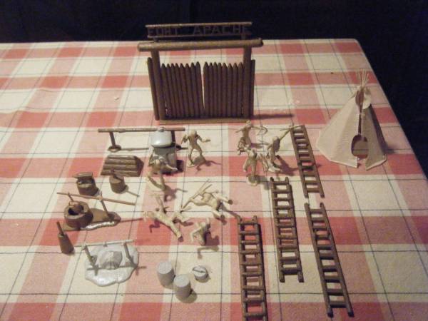 Marx 1956 Fort Apache playset with box. This was mine when I was a kid. Everything is there, I think but not sure. Box has tears and rips. etc.