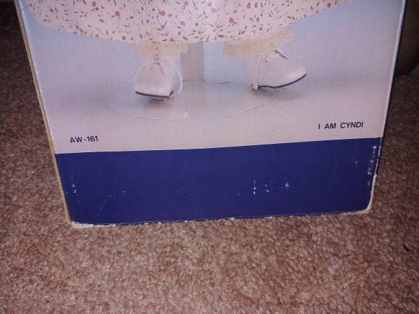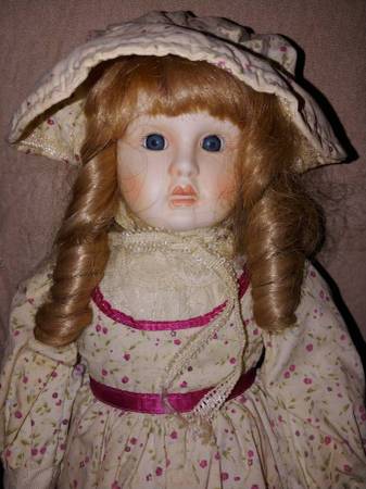 Doll is in perfect condition. No chips, cracks, or scratches. Measures 20" tall. Comes in original box. Top box flap is missing. See pictures for better detail of everything's condition. Asking $20...