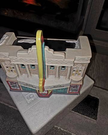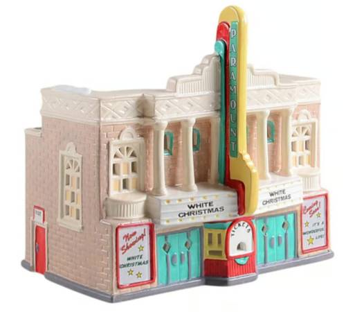 The Original Snow Village "The Paramount Theater" measures 8 inches tall. Lighted Porcelain Building. No light cord but I have brand new single ones for $10. Came out in 1989 retired in 1993. Dept 56 number 5142-0