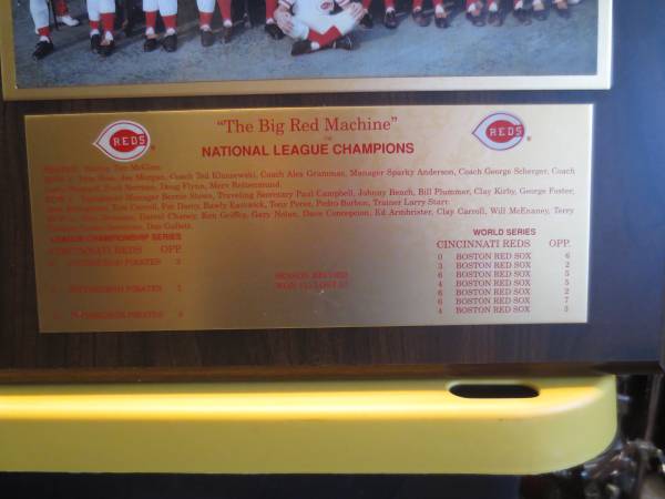 Cincinnati Reds World Championship Plaques I have one from 1975 and one from 1990 Asking $75 obo for both Call/Text: 9 three 7 9 0 one 9 six 4 three