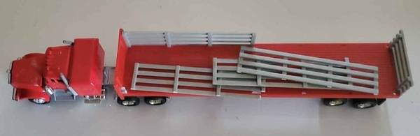 LIONEL 18 WHEELER FLAT BED WITH RAILS SOME BROKEN TABS. WORKS WITH O GAUGE TRAINS
