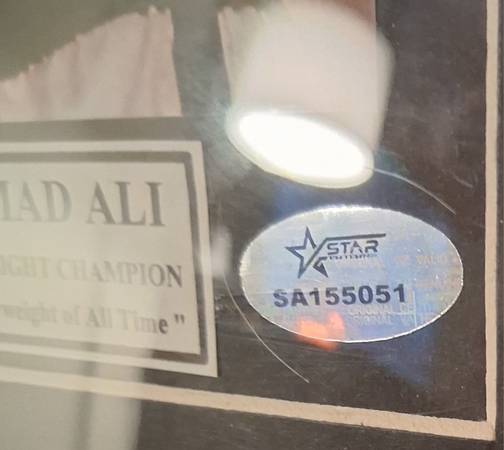 Muhammad Ali signed framed 8X10 with COA. $500.00/OBO. CASH ONLY. Meet up anytime after 12pm weekdays and anytime during the weekends to do the deal at the Sharonville Police station parking lot as...