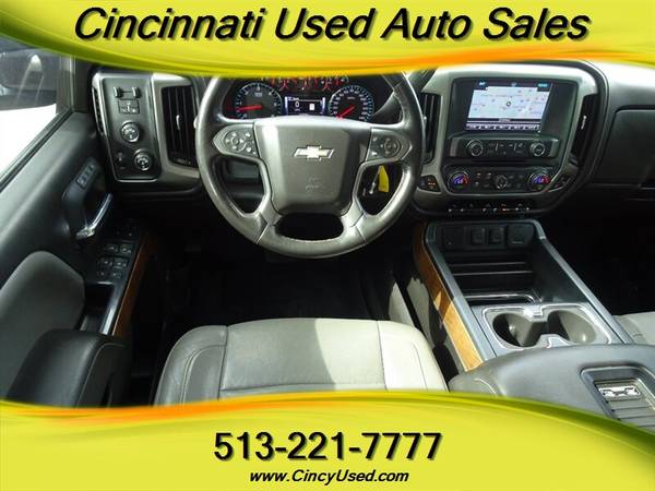 The 2017 Chevrolet Silverado 1500 LTZ boasts a powerful EcoTec3 6.2L V8 engine, delivering 420hp and 460ft. lbs. of torque for a commanding performance on the road. This model comes equipped with a range of factory default features designed to enhance comfort, convenience, and safety. Inside, you'll find luxurious leather-appointed seats with heating and ventilation functions for the front row, along with dual-zone automatic climate control to ensure a pleasant cabin environment. The Chevrolet MyLink infotainment system with an 8-inch touchscreen display provides seamless connectivity and entertainment options, including Bluetooth audio streaming and smartphone integration. Safety features include a rear vision camera, rear park assist, and lane keep assist to help you navigate with confidence. With its combination of power, comfort, and advanced technology, the 2017 Chevrolet Silverado 1500 LTZ offers a well-rounded driving experience for those seeking a premium truck option.