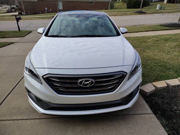 Original owner of loaded white 2016 Hyundai Sonata Limited. Hyundai 4dr, 2.4 GDI engine 143.96 cuin is looking for a new owner. Non smoker and still has factory warranty remaining. White exterior with taupe leather interior and 54,832 miles. 6 speed automatic transmission with 4 cylinders, 2.4L, 17” alloy wheels with new tires 6,000 miles showing 95% remaining tread, new disc brakes on all 4 wheels with new front rotors and traction control. New battery. Heated seats, steering wheel, heated mirrors, wood grain dash panels, front and rear electronic view mirror. 4 Carpeted and 4 rubber floor mats. 8 way power seats/lumbar support and memory mirrors with 2 keyless entry remotes and security alarm. Navigation system with custom (6) disc CD player in dash with anti-theft feature and 6 speakers. Factory installed XM Satellite radio with steering wheel controls for AM, FM and XM stations. Dual zone climate control. Cruise control with trip computer and tachometer. Engine compartment and trunk is spotless. Non-smoking drivers without any rips or abuse to seats or carpet. Approximately 33 mpg on the highway with a/c operating. Factory installed panoramic sun/moon roof that slides back into headliner with wind deflector. Oil change and tire rotation every 5,000 miles. Vehicle has always been kept in our garage. Papers available for services performed All original equipment. Front and side airbags with front and rear mudguards. At our age we do not need 2 cars any longer. Fully loaded for the proud new owner. Carvana has 6 comparable cars and none are as clean as this vehicle. Clear title and “BEST OFFER WILL BE ACCEPTED PRTONTO”. Asking $12,999..Do not feel embarrassed to make an offer if you are genuinely interested. Our loss is your gain. Must sell immediately. Call show contact info