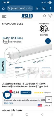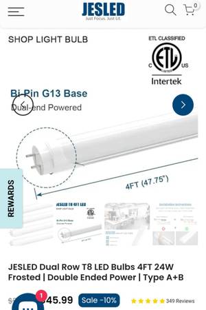 Jesled 4 foot long LED type b bulbs. 24w 6000k 3000lm 4 feet long fluorescent tube replacement ETL listed double row frosted dual-end powered.