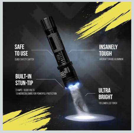 2-in-1 Stun Gun Flashlight | Rechargeable Stun Gun for self Defense Men Women | Shockwave Mini Tactical Stungun | Palm-Sized | 150-Lumen, 9,000 Volts to Deter Attackers