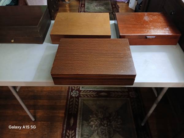 Four vintage silverware cases. $40 takes everything shown. All in good used condition. Cash only no holds unless on your way. I'm not available on Saturday. Call or text only