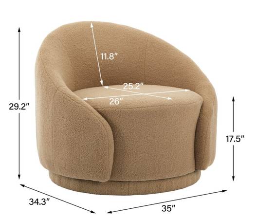New Sherpa Material Swivel Accent Chair 360° Light Brown Color Dimensions 34"D x 35"W x 29"H Pickup in Amelia near Kroger marketplace. Fcfs no holds without 50% venmo deposit. Can accept venmo or...