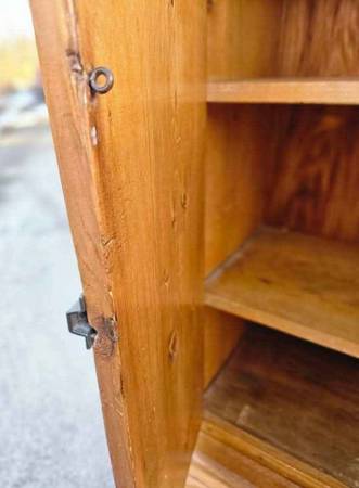 $299 ANTIQUE COLONIAL CABINET. W/ SHELVES. 32 in tall x 24 in wide x 12.5 in deep SOLID WILL ADD DIMENSIONS SOON. WALL OR ON TOP OF ANOTHER PC CABINE