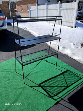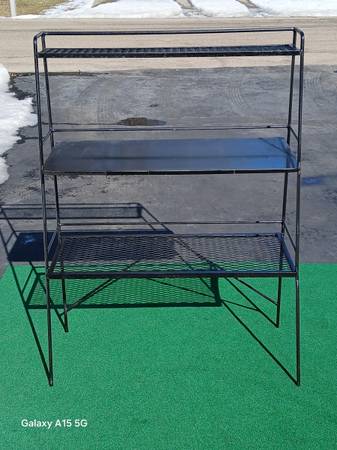 Vintage 1950s or 60s wrought iron bookshelf or Etagere or plant stand. Good used condition with light wear. Sturdy. Measures 37"w x 18"d x 50"h. Cash only no holds unless on your way. I'm not...