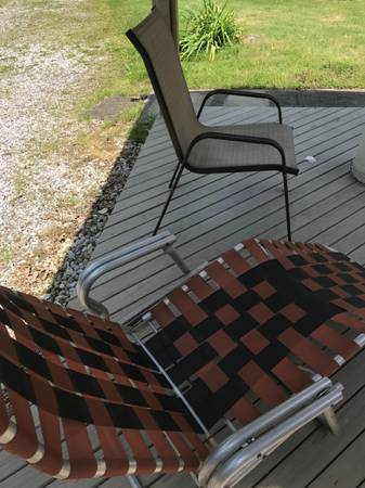 The chair is from the 60's always used indoors, the chair has two positions lounge and it will recline back to a different position. The material is like new and the aluminum frame is like new.