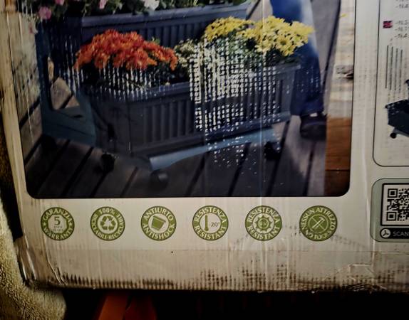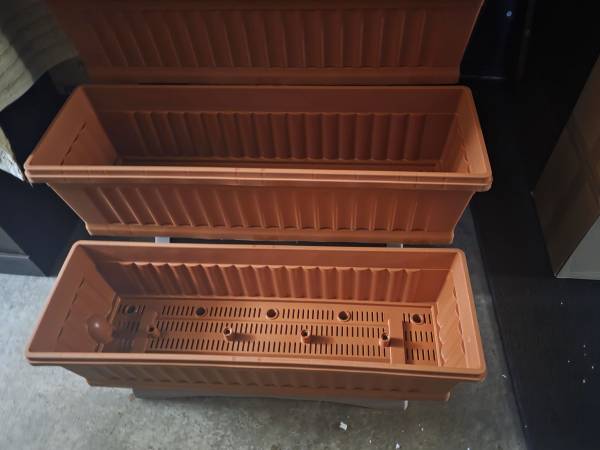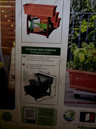 The 3 planting containers that go on the cart each measures 32 inches wide by 29 inches tall by 29 inches deep.