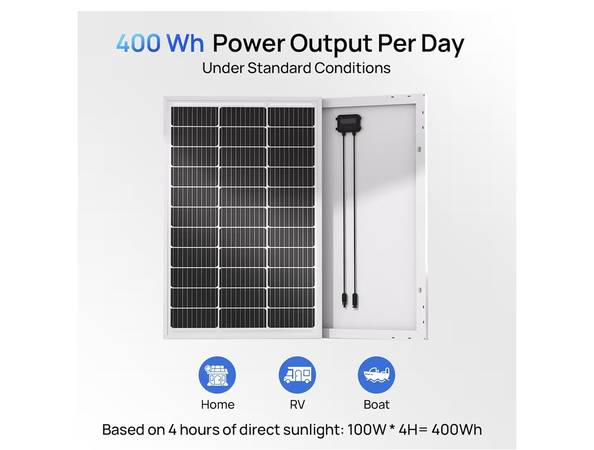 Brand: ECO-WORTHY Material: Monocrystalline Silicon , Low Iron Glass, Anodized Aluminum Product Dimensions: 35.24"L x 23.03"W x 1.38"H High Efficiency Included Components 4pcs 100 Watt Solar Panels...