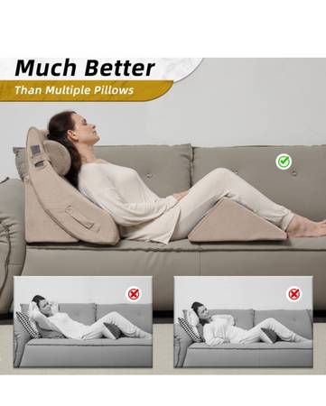 Brand New 4 piece orthopedic bed wedge pillow set for back, leg, neck pain relief. Comfortable and adjustable. Can be used post surgery. Very soft tan covers with zippers for easy removal to wash. Can be used for anti snoring, heart burn, acid reflux and GERD.