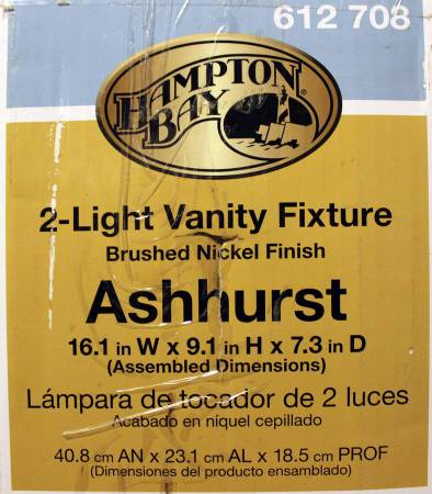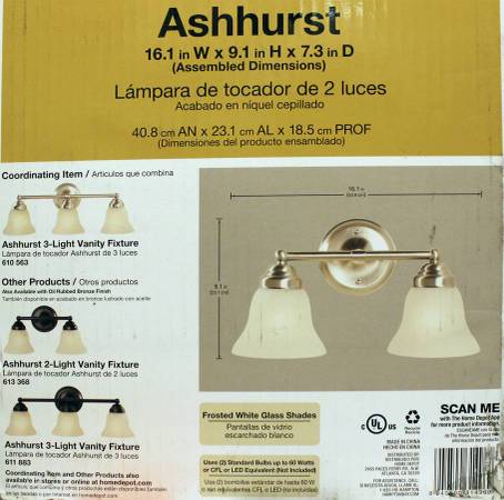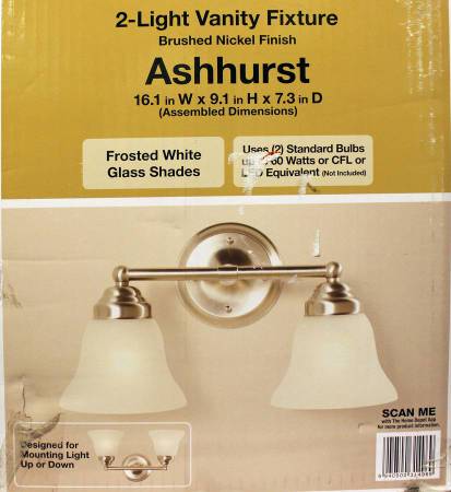 Hampton Bay Ashhurst 2-Light Vanity Brushed Nickel Frost White Glass Shades In Box Go to more ads by this user on this page and see all my vanity lights