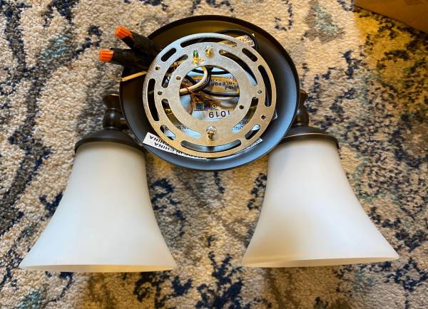 2 Light Vanity Fixture[ up to 60 watt] White opal glass oil rubbed finish Go to more ads by this user on this page and see all my vanity lights