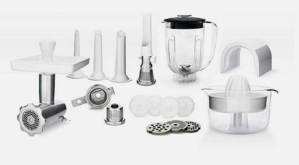 Included in the Deluxe Accessory Set are the Meat Grinder Complete Package which includes the Food and Meat Grinder, three Sausage Stuffer Tubes, Food Strainer, Grater, Cookie Press, Meat Grinding Disks, Blender and Citrus Juicer.