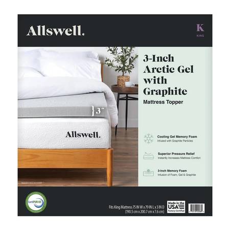 Allswell 3” Sleep Cool ThermaGel Memory Foam Topper Infused with Graphite, King, purchased but didn't use, sells for $128, asking $55