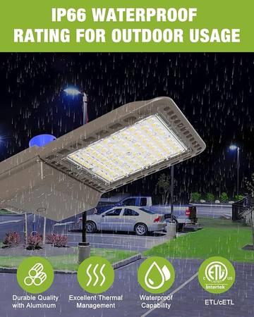 With Dusk To Dawn Photocell - The parking lot light is equipped with a dusk to dawn photocell, it will automatically turned on at sundown/night, and it is turned off at the sunrise/daytime. It is IP65 waterproof can handle all weather.Whether it’s rainwater or moisture, neither can affect its normal operation.