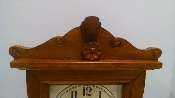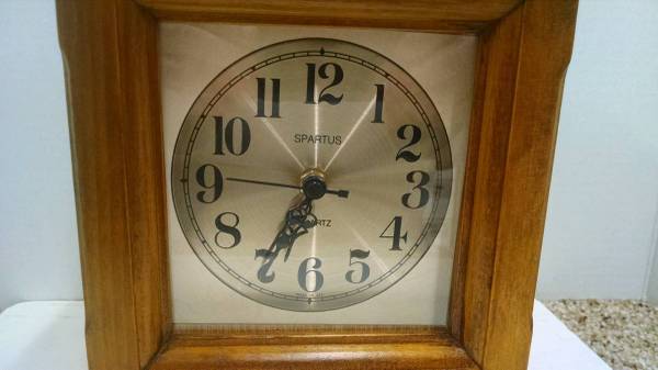 Excellent condition, a Spartus rustic pine case mantel clock, about 10.5" high, 8" wide, and 3.5" deep. Real glass face cover. Uses an AA battery and comes with a new one. To see all my clocks, put...