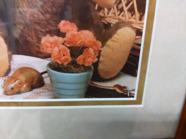 Excellent condition, a wood framed wall print of 5 classic Teddy Bears. About 29" x 16". Double matted. Clean and ready to hang. To see all my pictures, put GOODPRINTS in the craigslist search box.