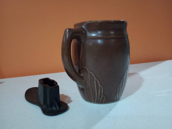 --Vintage Monmouth Art Pottery Pitcher Brown Shell Pattern USA Western Stoneware Deco