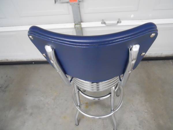 STOOL-BLUE SEAT and BACK. $100.00 Call Craig @ the phone number in the picture, if no answer, leave message, will call back ASAP. The seating height is 29" from the floor. The seat is 14" round....