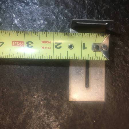 Made of Stainless steel, so will never rust. 2.75" x 1.5" x 7/8" See pics. They are pre-cut with slots holes for screws or bolts to fasten them and are made to be adjustable. Brackets are fairly thin but strong enough you can't really bend them with your hands. Edges and corners are not sharp or jagged, these are relatively safe to work with or rub up against without getting cut.