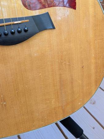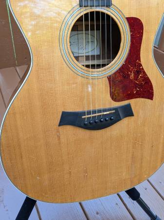 2006 Taylor 414 - This is a really nice playing guitar, recent setup and new strings, and sounds really good with exceptional volume/projection, has an added L.R. Baggs Element pickup and comes with the original hard shell case. The guitar is NOT a closet queen by any means, has plenty of beauty marks as well as a few repaired cracks (1 on the top and a couple on the back) that have been repaired and are solid (the guitar is in the same condition it was in when I bought it about 6 years ago). That being said, I am offering it up at a deeply discounted price given it's cosmetic condition, but it's a solid Taylor and plays and sounds very nice!!