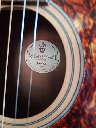 The Guild OM-250E Limited Edition offers unbeatable design & value, with significant upgrades. Featuring an arch back design for enhanced projection & resonance, plus Fishman electronics. This guitar is like new. The plastic is still on the pick guard. Professional s set up. Nice fret work. Great intonation. No string buzz. Comes with a new Breedlove acoustic guitar gig bag, strap and guitar stand. Price is firm. No trades. Downsizing, it's always hard to let go. Thanks