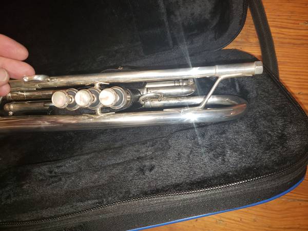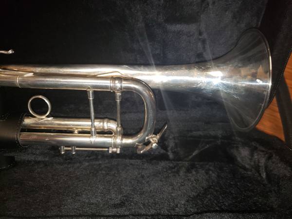 What’s even better than a Bach Stradivarius? A Bach Artisan! This is one of several professional trumpets we are offering for sale. Bach Stradivarius Artisan Series model AB190S. About $1,500 more than standard Strads, it’s got bunches of improvements to the bell, ferrules, and more. This one is in very good condition: silver plate good except for some wear mostly at the bottom of the valve casings as seen in the photos, which is almost completely covered by the included, brand-new ProTec six-point leather valve guard. A few, scattered, small marks and imperfections left over from past dent removals, but no significant dents or repairs currently. It is a great-looking horn as long as it’s got that leather guard in place, which should prevent additional wear as well. Functionally it’s near perfect: All tuning slides are free including the third-valve dump slide. Valves are fast and smooth and quiet with very little wear. Just through the shop where it was chem cleaned, detergent cleaned, lubed, polished and had all new tuning slide O-rings, water key cork, stop rod bumper, and piston felts installed. Compression is excellent. Extended F stop rod so you can play a whole step lower than the rest of the trumpets. Valve oil and tuning slide grease are for local pickup only and will not be shipped, but it does include a new ProTec microfiber cloth, the new ProTec leather guard, and a brand-new Kaces lightweight case with backpack straps and external pockets. We may also have this case in different colors upon request. Note that we have lots of cases and mouthpieces for sale separately, so please let us know if you’d prefer this with no case or a different case. Sells for $5,060 at M&A compared to $3,569 for a standard silver Strad. So, save more than $3,000, and snatch up one of the only ones you’ll find on the used market!