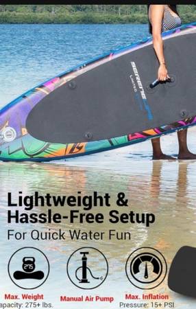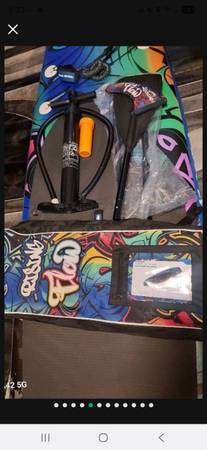 Brand new in box. Only took out for pictures. I love love love the colors on these boards. 10.6 inches long by 32 inches wide 6 inches thick. Up to 300 pounds. Repair kit and waterproof bag. $453...