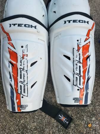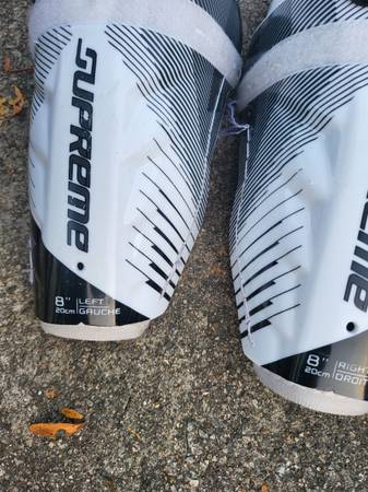 Hockey equipment from youth small to youth large (for ages 5 to 10). My son no longer plays hockey. See pictures for sizes. Gloves, elbow pads, upper and lower padding, helmets, skates, sticks, and bags. Some is new, but most used in good to excellent condition. The hockey sticks 2 left handed hockey sticks Bauer as well I will list in pretty good condition. See pictures for measurements. The handles where never cut down. My son is right handed l, but preferred to play with a left handed stick.