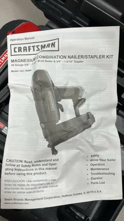 CRAFTSMAN 18-Gauge 1/2-in Narrow Crown Finish Pneumatic Nailer/Stapler. Great condition. Includes the carrying case. The CRAFTSMAN 18-gauge brad nailer drives 18-gauge nails from 5/8-in to 2-in in...