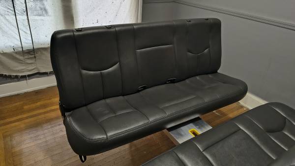 59" wide. $300 for the one with headrests. 250 for the other one. Both are in excellent condition leather. For extended cab Silverado. Meet at 8274 vine Street 45216