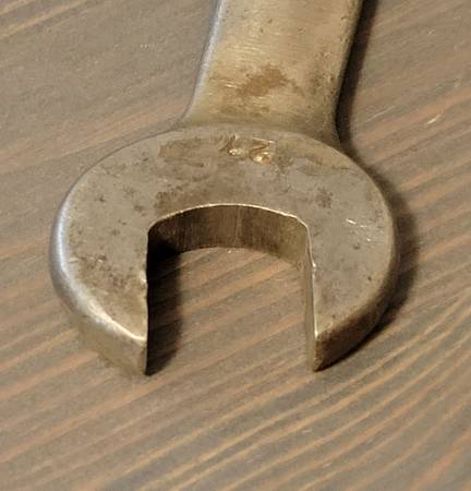 The smaller wrench is stamped "27" on the jaw. It is marked 3/8" and 5/16".