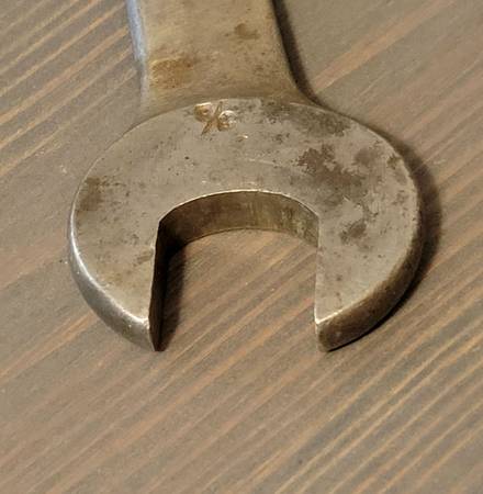Both are in Good to Excellent vintage condition. Some stains from grease/oil. There is a bit of wear, but it is extremely slight on both pieces. There are (3) small round marks (made with a small punch tool) to either side and below the logo on the smaller wrench.
