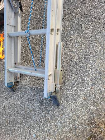 250 lb load capacity 36 ft Werner aluminum extension ladder with levelers on the base. Like new condition. 165.00 cash at pick up. Phone or text