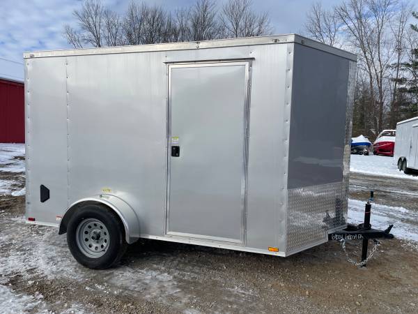 2026 6x10SA Quality Cargo Enclosed Trailer. NEW. SILVER ( V9024 ) LED Lights,Radial Tires, RV Side Door and Ramp Back Door