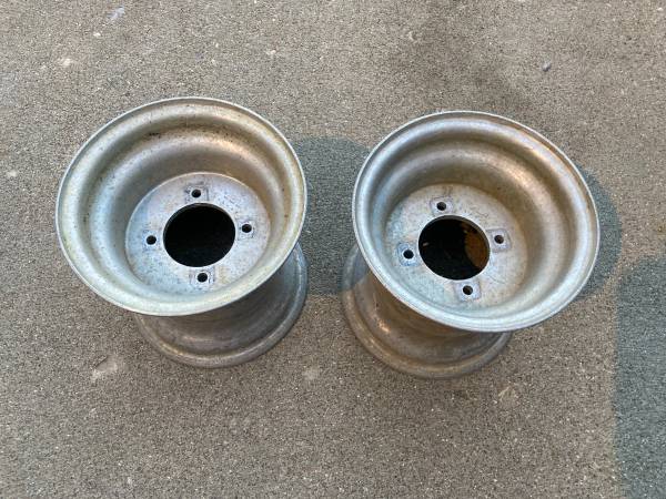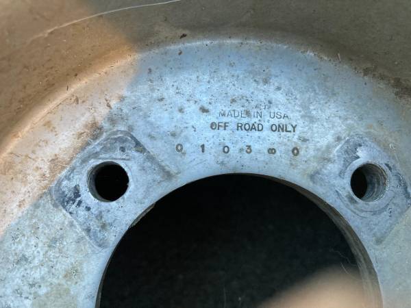 A pair of aluminum off-road wheels. 8 x 8 4 on 4 Made in USA.
